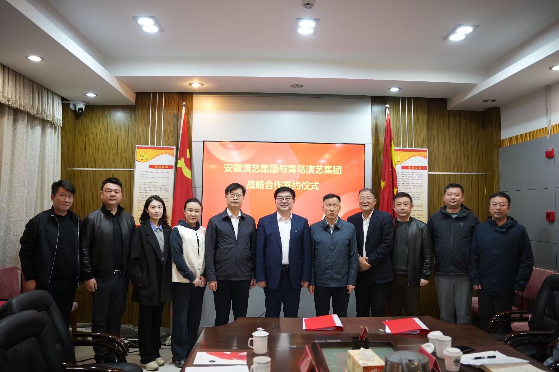 集团办公室、艺术生产部、产业拓展部、省黄梅戏剧院、安徽大剧院、省徽京剧院、安徽演艺文化艺术培训中心有限公司,青岛演艺集团市场部、教育事业部、青岛市京剧院、青岛东方龙视影视公司相关负责人参加。(办公室供稿)